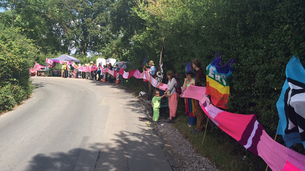 The scarf, which took thousands of hours to knit, was stretched from the Atomic Weapons Establishments in Aldermaston to Burghfield.